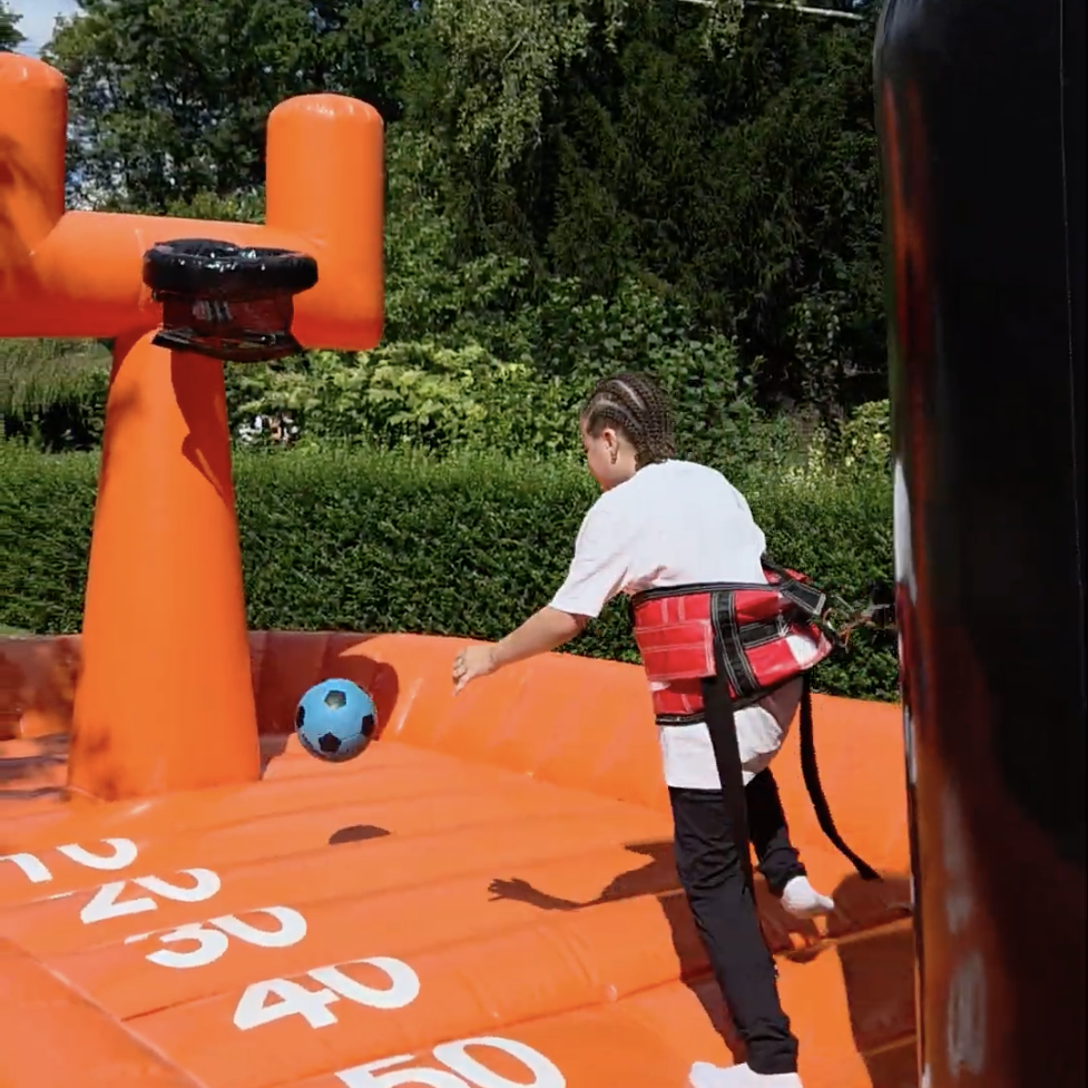 Imaginez un duel où deux joueurs s’affrontent sur un terrain, chacun relié à son adversaire par un élastique. Le but ? Réussir à marquer dans le panier opposé, tout en résistant à la traction de l’autre joueur. Fous rires garantis dès les premières secondes !